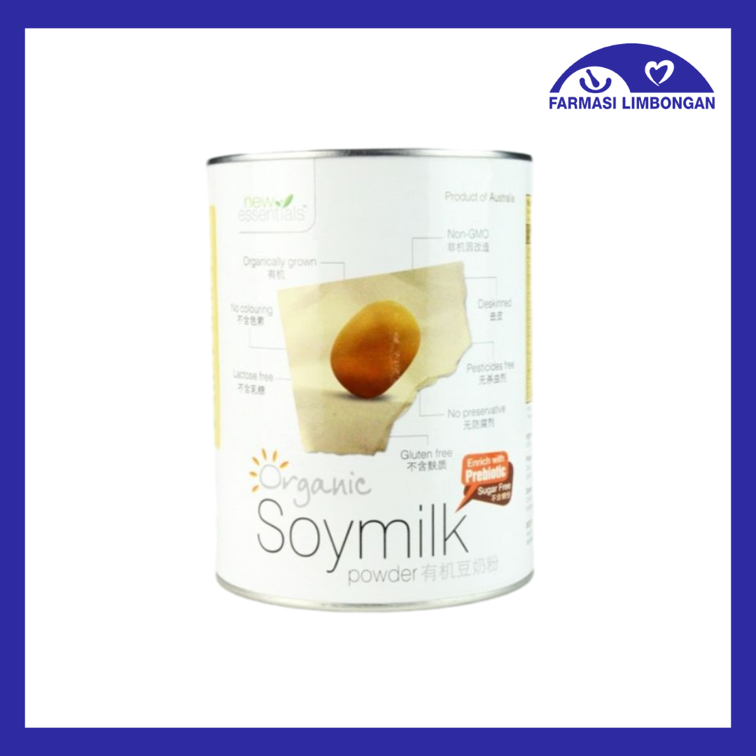 New Essentials Organic Soymilk instant powder New Essentials Organic Soymilk instant powder is made from 100% finest Non-GMO organic soya bean. It is manufactured from the latest advance European technology and also Union Organic Foods Standard CEC-Regulation No.2082/91. Soya beans are deskinned before processing, which made the New Essentials Organic Soymilk richer and taste smoother without “Beany” taste. New Essentials Organic Soymilk powder maintains more of the naturally occuring isoflavones. Total isoflavones 72mg per 100g. Enrich with Prebiotic-Oligosaccharide Prebiotic are non-digestible food ingredient such as inulin, FOS (fructo oligosaccharide) that are able to stimulate the growth and activity of friendly bacteria in our digestive tract. Found naturally in human milk, certain cereals, fruits and vegetables, prebiotics are able to reach the large bowel without being digested, thus providing food for friendly bacteria that resides in our colon. Extensive research has shown that including moderate amounts of prebiotics in our diet results in a significant increase (5 to 10 times) of the beneficial bifidobacteria in the intestinal tract. At the same time, the presence of unfriendly bacteria is significantly reduced. Ingredients: 100% certified Organic Soyabens, Oligo Saccharide Preparation: Take 2 tablespoon (25g) mix with 250cc of warm water. Net Weight: 700g