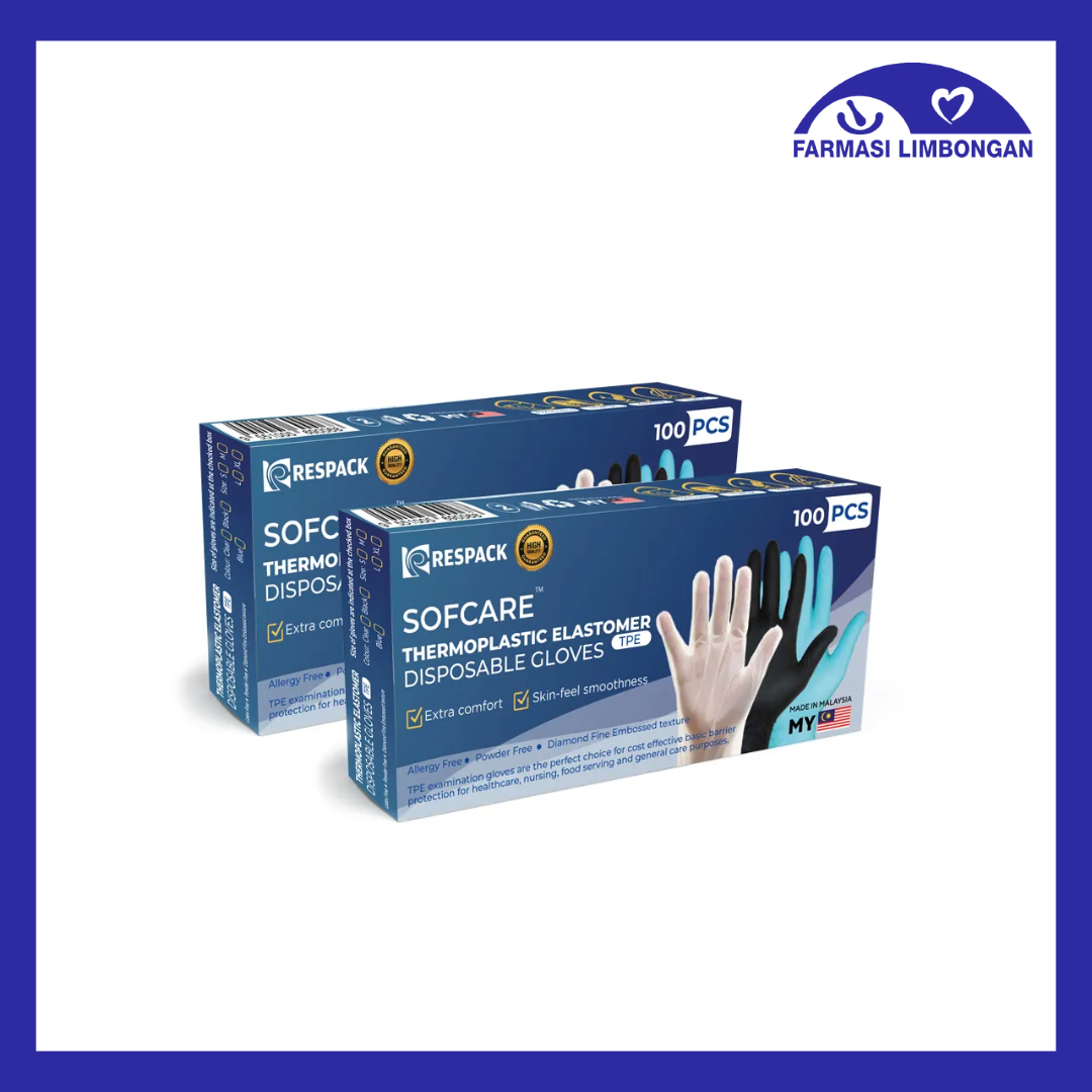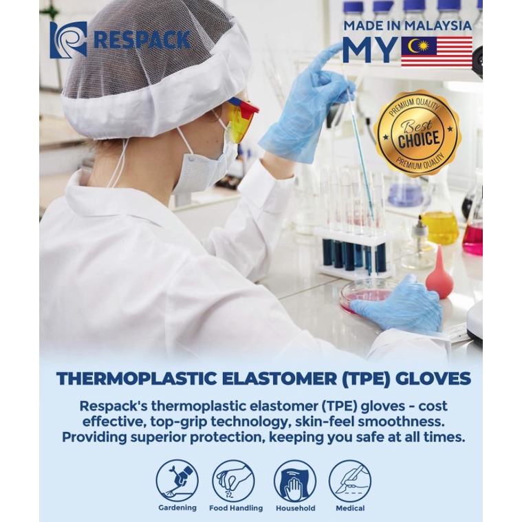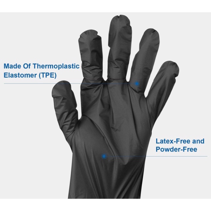 RESPACK THERMOPLASTIC ELASTOMER (TPE) DISPOSABLE GLOVES – BLUE/TRANSPARENT/BLACK (S/M/L)