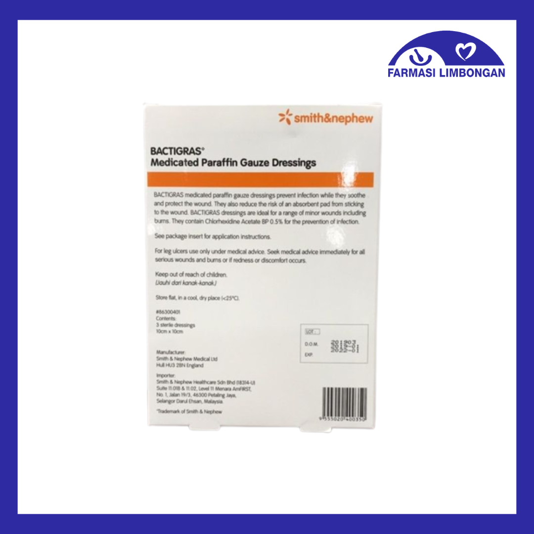 SMITH&NEPHEW BACTIGRASS MEDICATED TULLE GARS (3’s) OR (1’S) 10CMx10CM